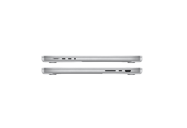 Transférez vos photos et vidéos à l’aide d’un lecteur de carte SDXC. Connectez votre téléviseur ou votre écran à la sortie HDMI. Écoutez votre musique grâce à une prise casque 3,5 mm qui s’adapte automatiquement aux casques à haute impédance. Connectez des accessoires ou des écrans rapides à l’aide de trois ports Thunderbolt 4. Et rechargez plus rapidement grâce au connecteur MagSafe 3 sécurisé.